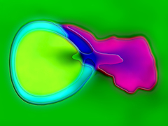 Puis il me vint l'idée de m'affranchir de la matière photographique. Sur une page vierge je trace quelques éléments dont je modifie ensuite la forme, la couleur, l'association jusqu'à trouver une harmonie. En variant les outils et leurs paramètres et par actions successives le dessin évolue. Souvent c'est l'échec, la démarche est dans une impasse, le dessin ne répond pas à mon aspiration. D'autres fois le travail aboutit à l'effet esthétique recherché. Il m'arrive alors de lui donner un titre et de le ranger avec ses semblables avant de passer à un autre atelier.